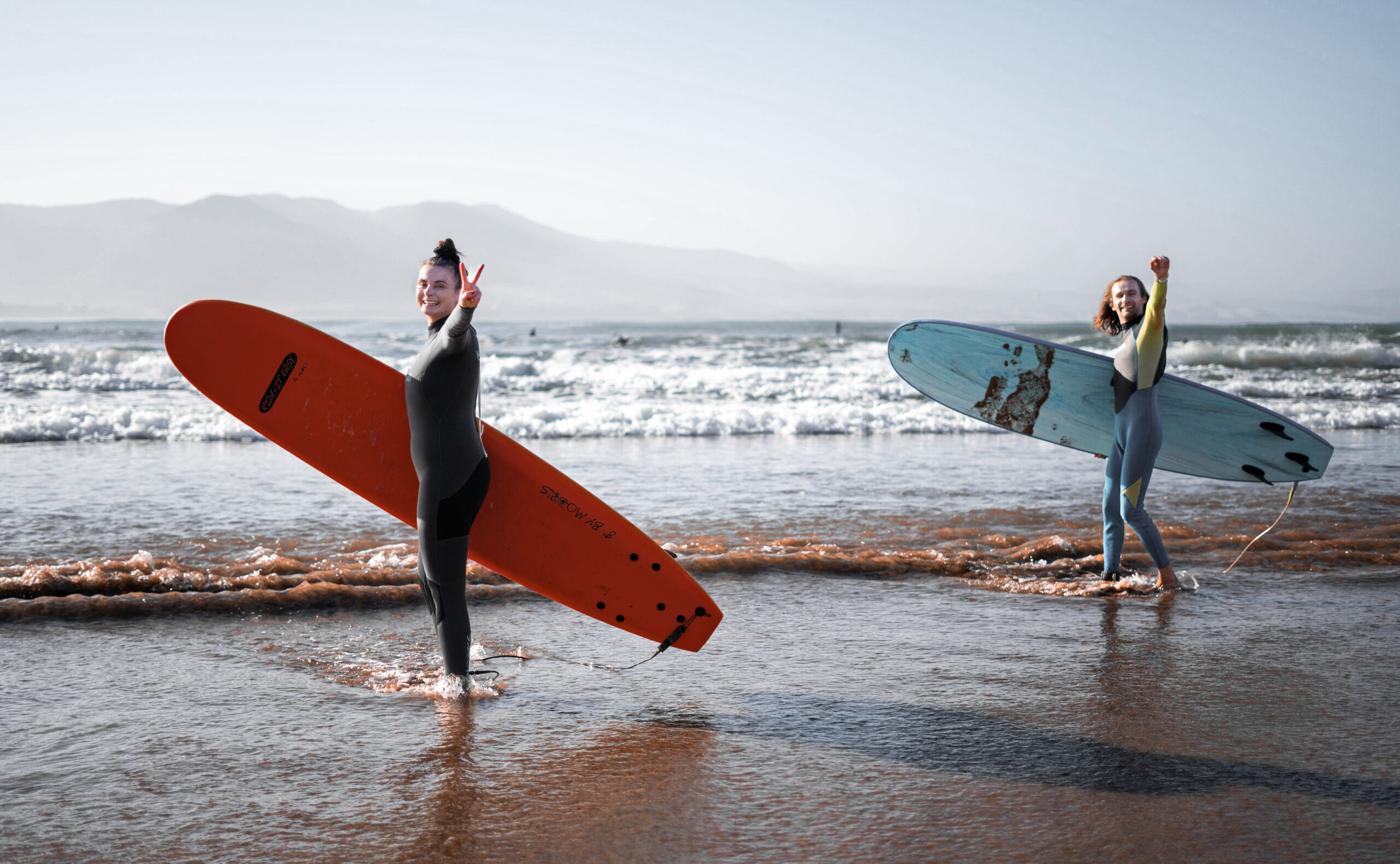 Pierwsza Fala powstała po to żeby Twój pierwszy kroku w świat surfingu był przyjemny, bezpieczny i niezapomniany. Idealne warunki marokańskiego wybrzeża, piękna pogoda, nielimitowany dostęp do nowego sprzętu i luźna kumpelska atmosfera są zapewnione. Poza nauką surfingu znajdujemy czas na relaks, zabawę i rozkoszowanie się bogatą marokańską kulturą i pyszną kuchnią
